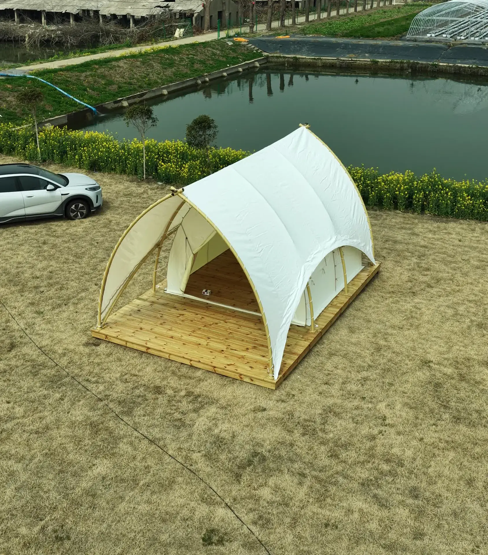 Light luxury tents feature simple yet stylish designs that balance comfort and aesthetics. They are ideal for high-end camping, resorts, and boutique hotels. Equipped with insulation, waterproofing, wind resistance, ventilation, and natural lighting, they can also be fitted with interior furnishings, bathrooms, air conditioning, and other amenities to enhance the living experience.